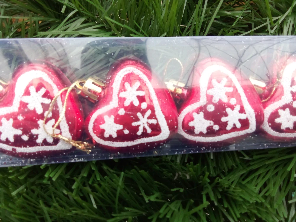 Vánoční dekorace závěsné srdíčko červené( balení 6ks)