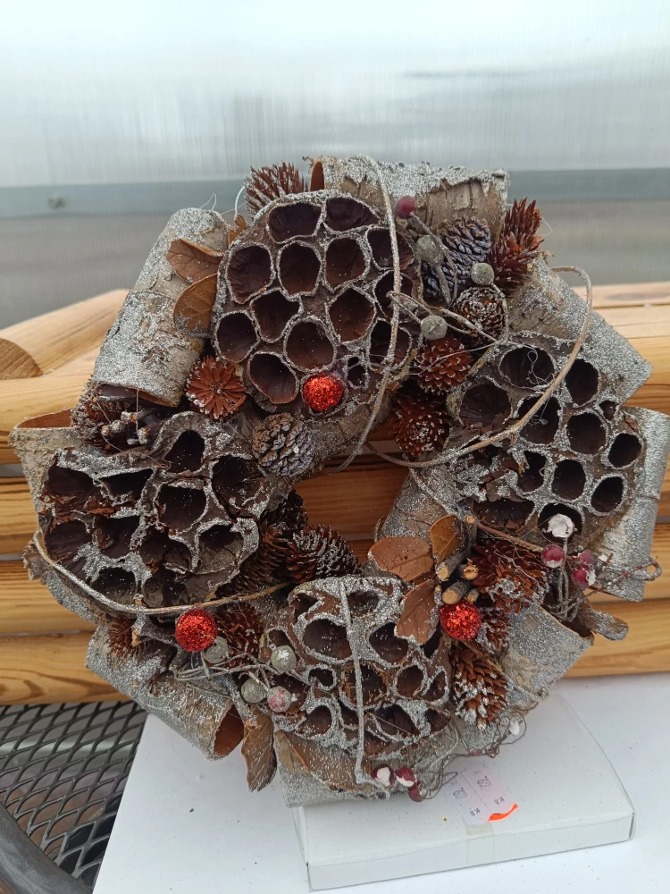 - Vánoční věnec - s dekorací (dřevo, červené kuličky..) 24cm
