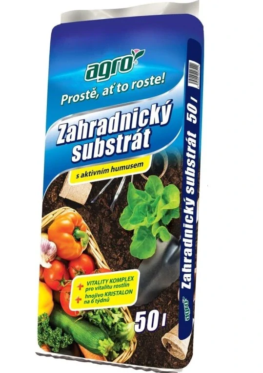 AGRO Zahradnický substrát s upraveným pH je směsí rašeliny, kvalitního vyzrálého humusu - což je nejúrodnější druh půdy - a obsahuje složky: